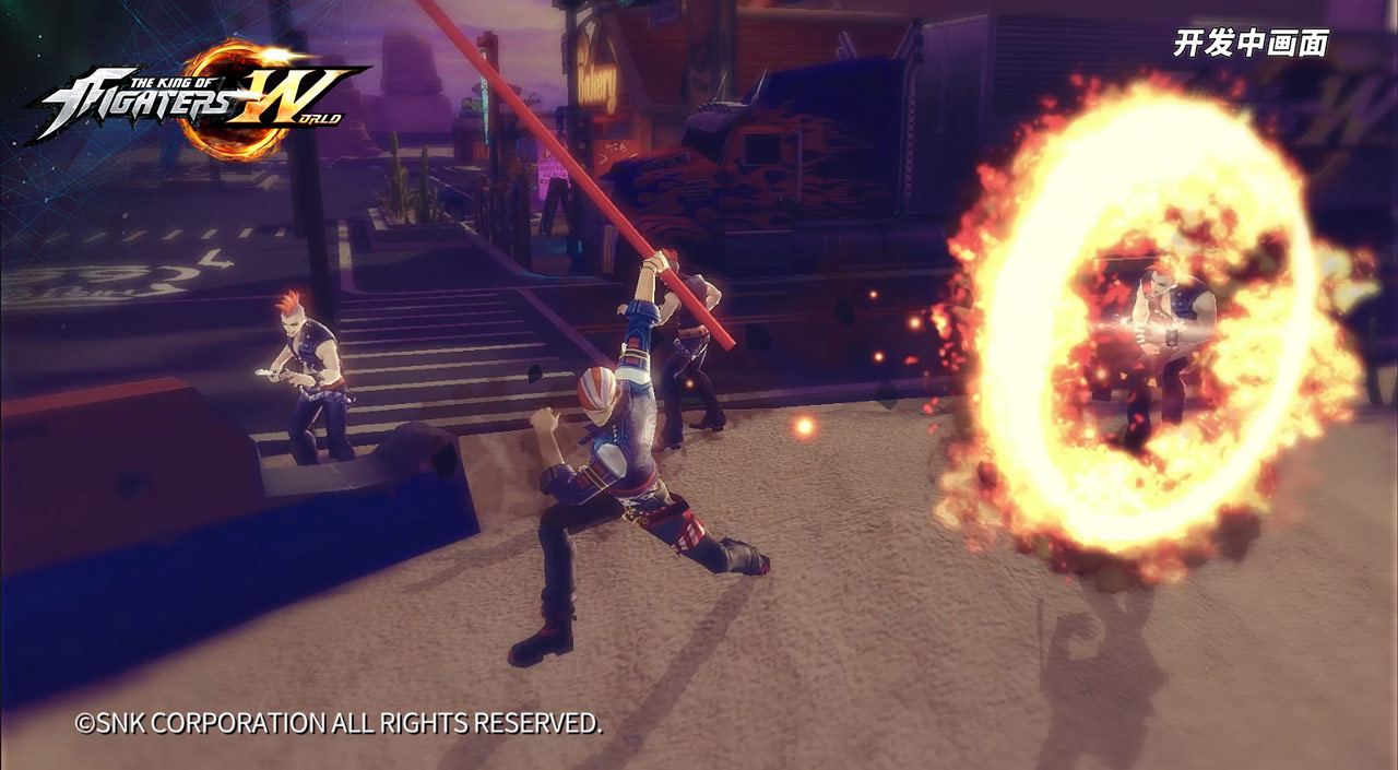 大型3D-MMORPG手游《拳皇世界》,英文原名THE KING OF FIGHTERS: WORLD。游戏采用全3D引擎制作,除了拥有3D全景画面表现外,还将有KOF史上最全的格斗家演出以及KOF系列经典剧情补完,揭开KOF历代诸多剧情谜团。《拳皇世界》会将玩法重心由“华丽格斗”转向“3D全景自由都市”,在保留系列格斗手感的同时,为玩家营造一个属于KOF的大世界。